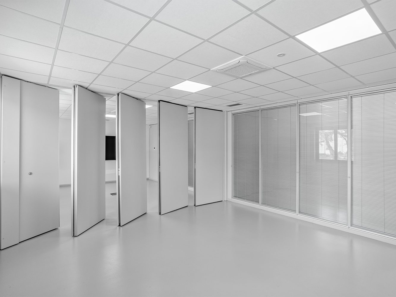 Migliora la funzionalità del tuo ambiente lavorativo grazie ai nostri sistemi modulari di pareti mobili altamente personalizzabili.